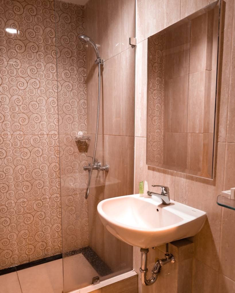Kamar mandi?  Tentu saja bersih dan wangi. Shower Air Panas? Tidak perlu di ragukan lagi. Aminities? Tersedia lengkap, mulai dari sabun, pasta sikat gigi, dan shampoo,